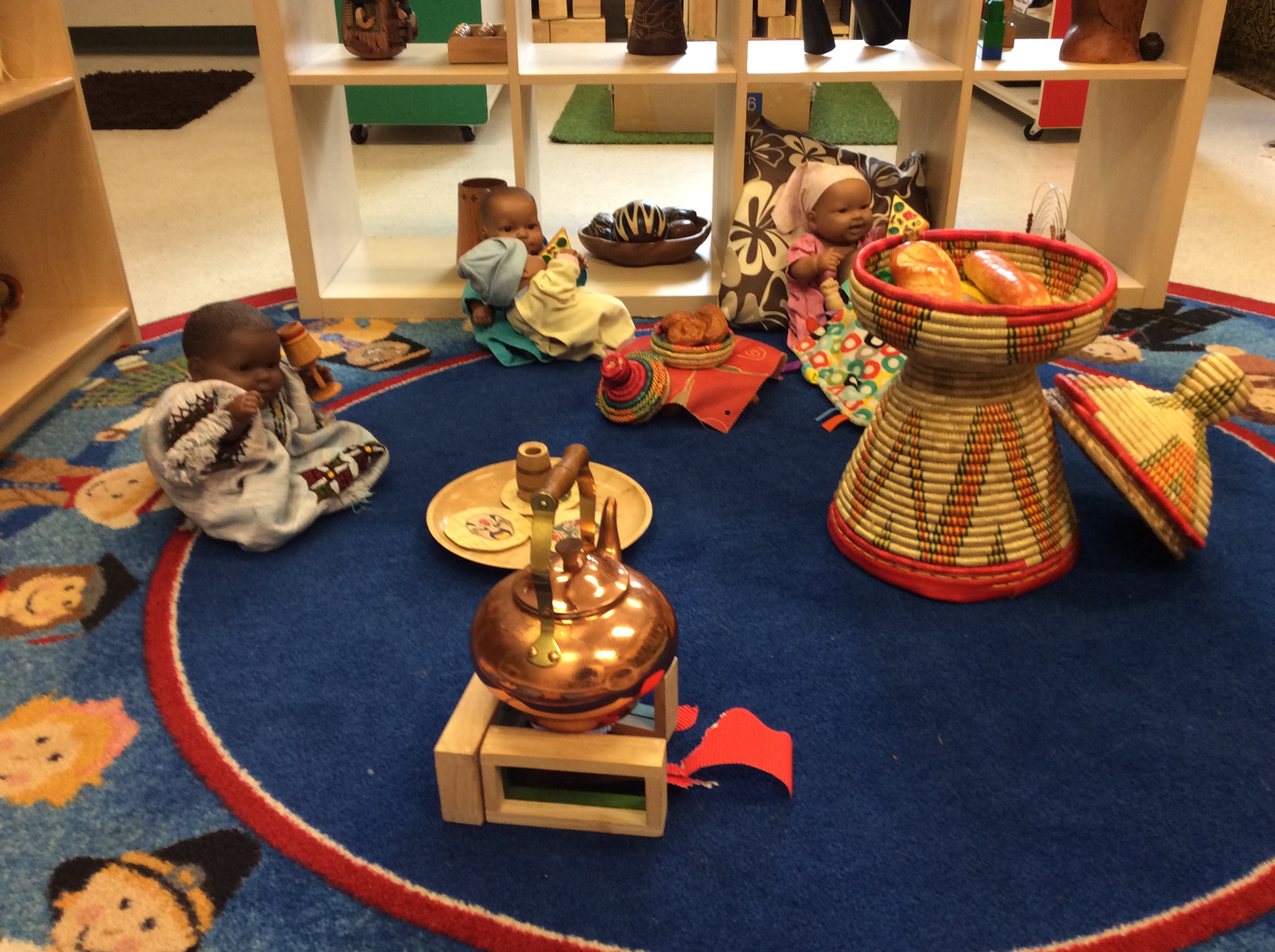 Our playroom environments are inspired by the cultural backgrounds of educators, children, and families. Our goal is to stimulate a child's creativity at the same time as introducing them to different cultural experiences. Our playrooms are filled with loose parts, cultural artifacts, and natural materials that foster exploration.